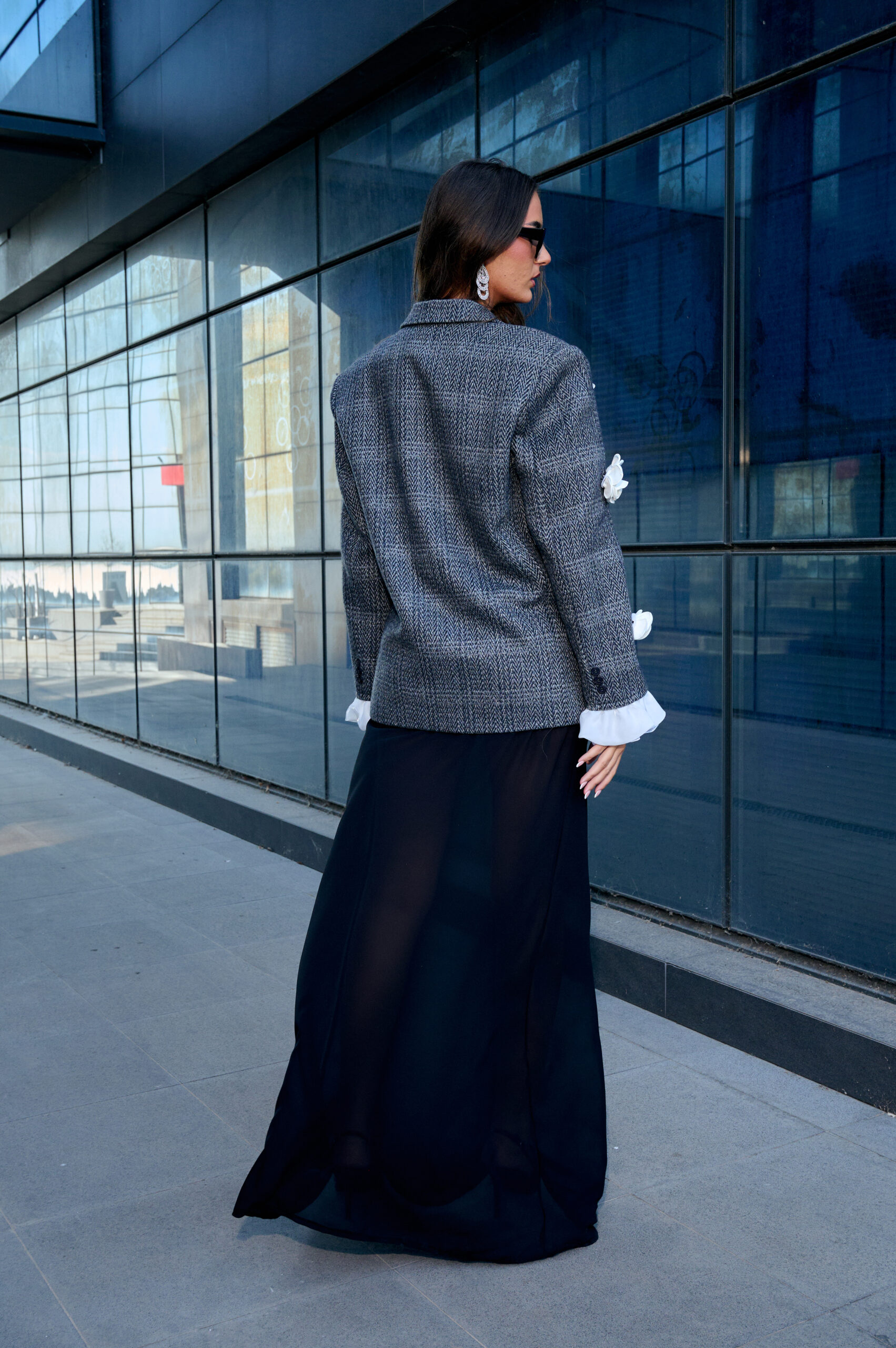 Συνδυασμένο με λευκό πουκάμισο και υφασμάτινο παντελόνι ή maxi φούστα,