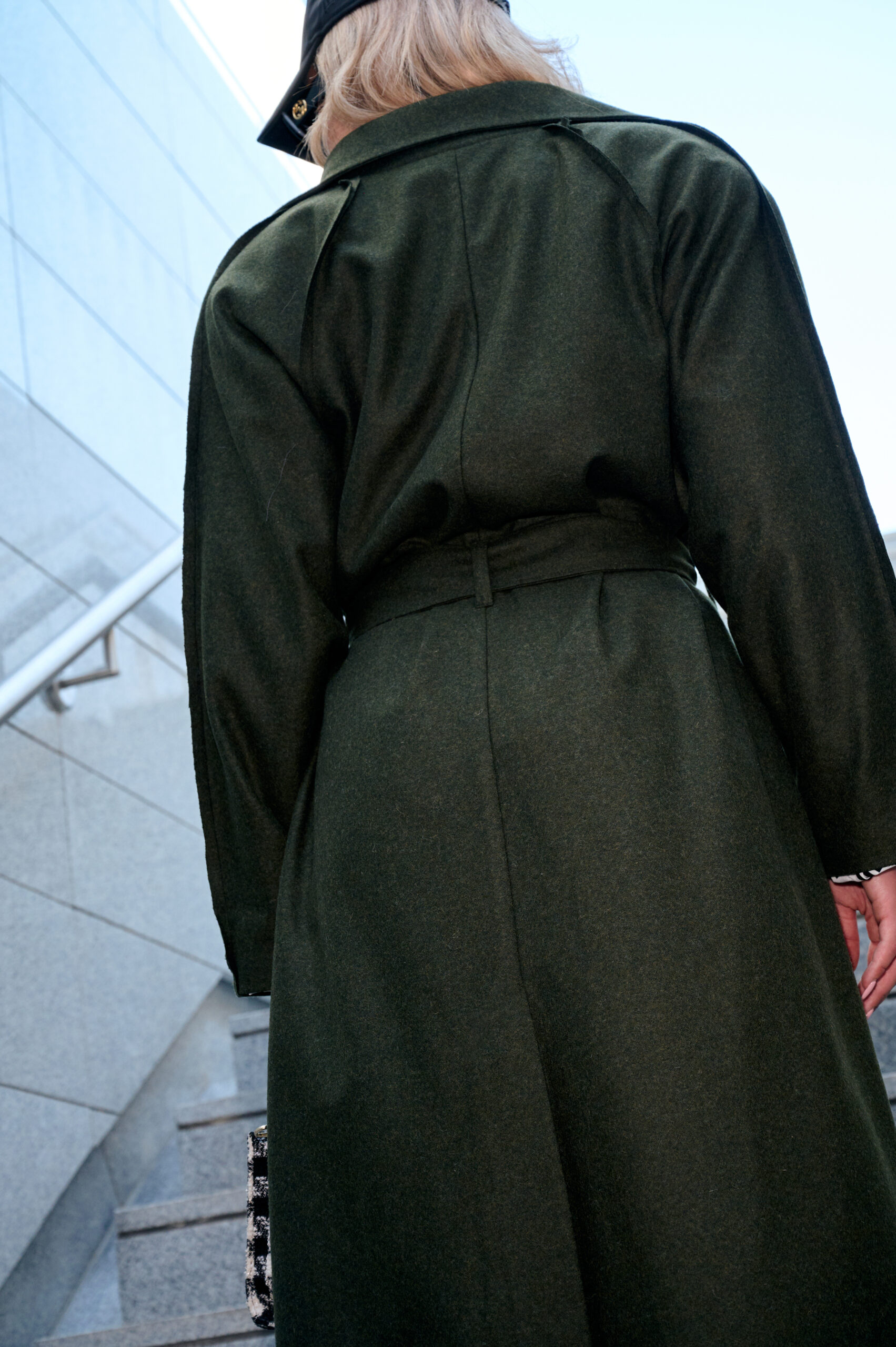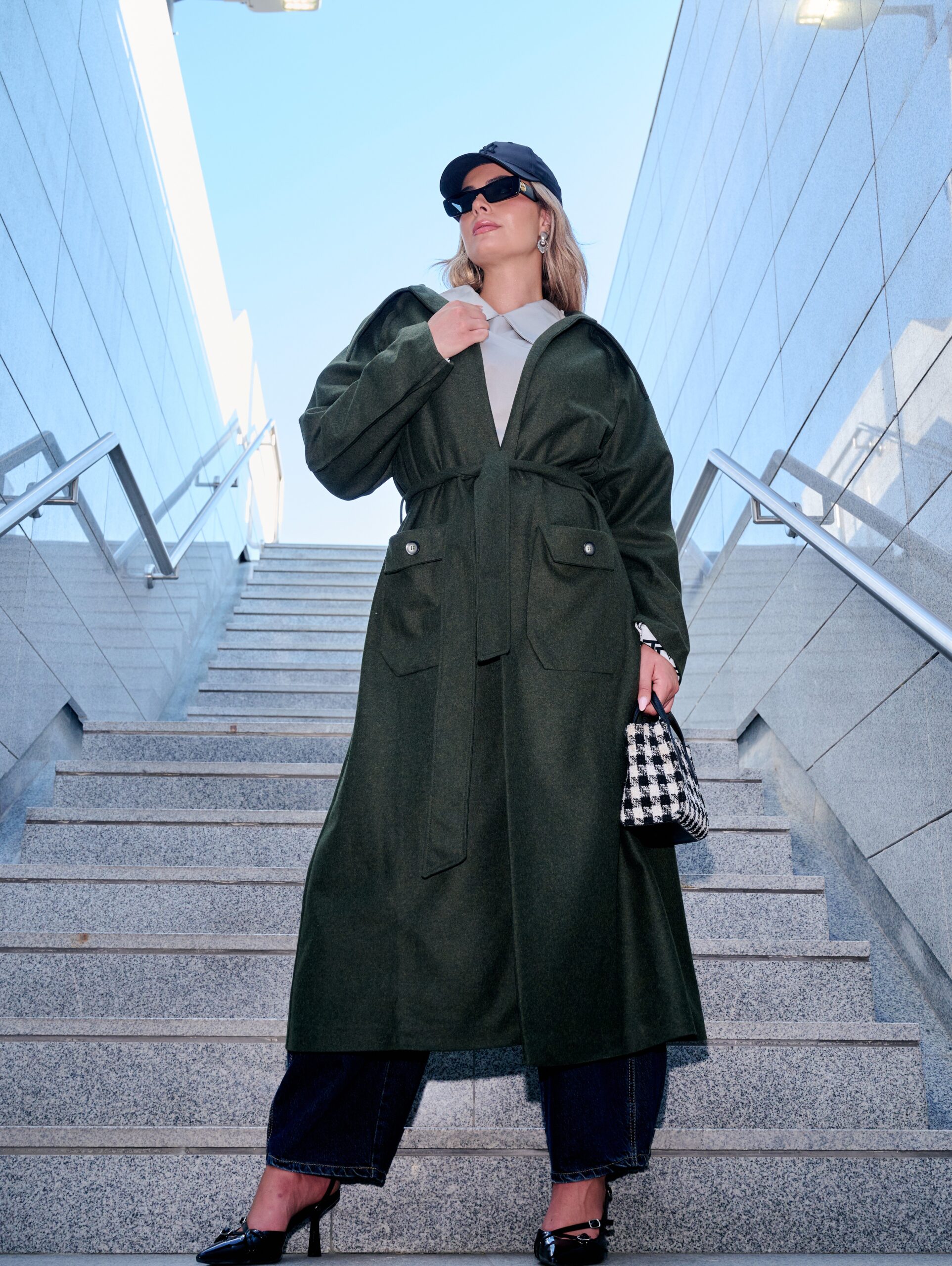 Μάλλινο παλτό τσόχα από τη σειρά TRIAMIA σε κομψό χρώμα κυπαρισσί.