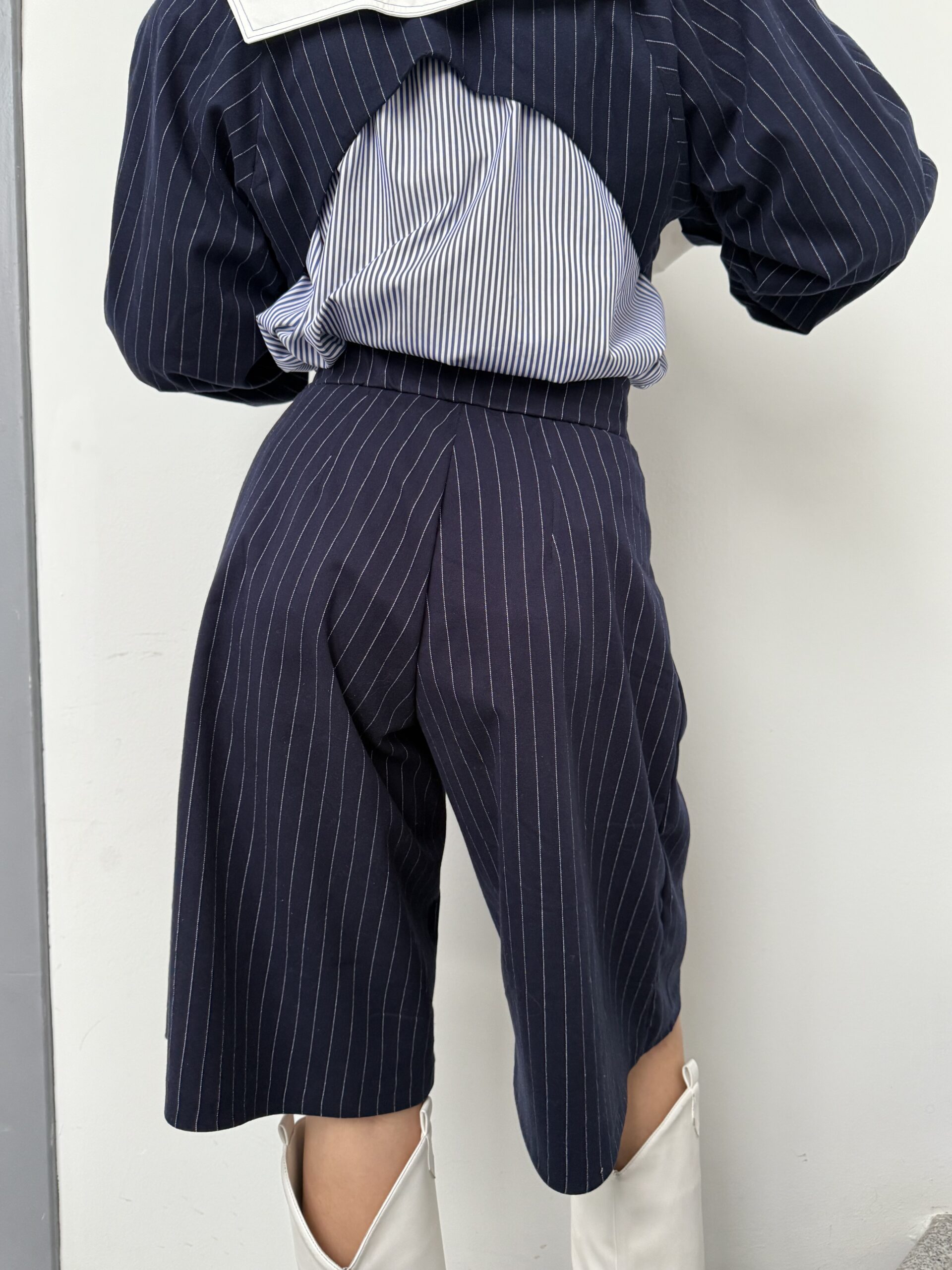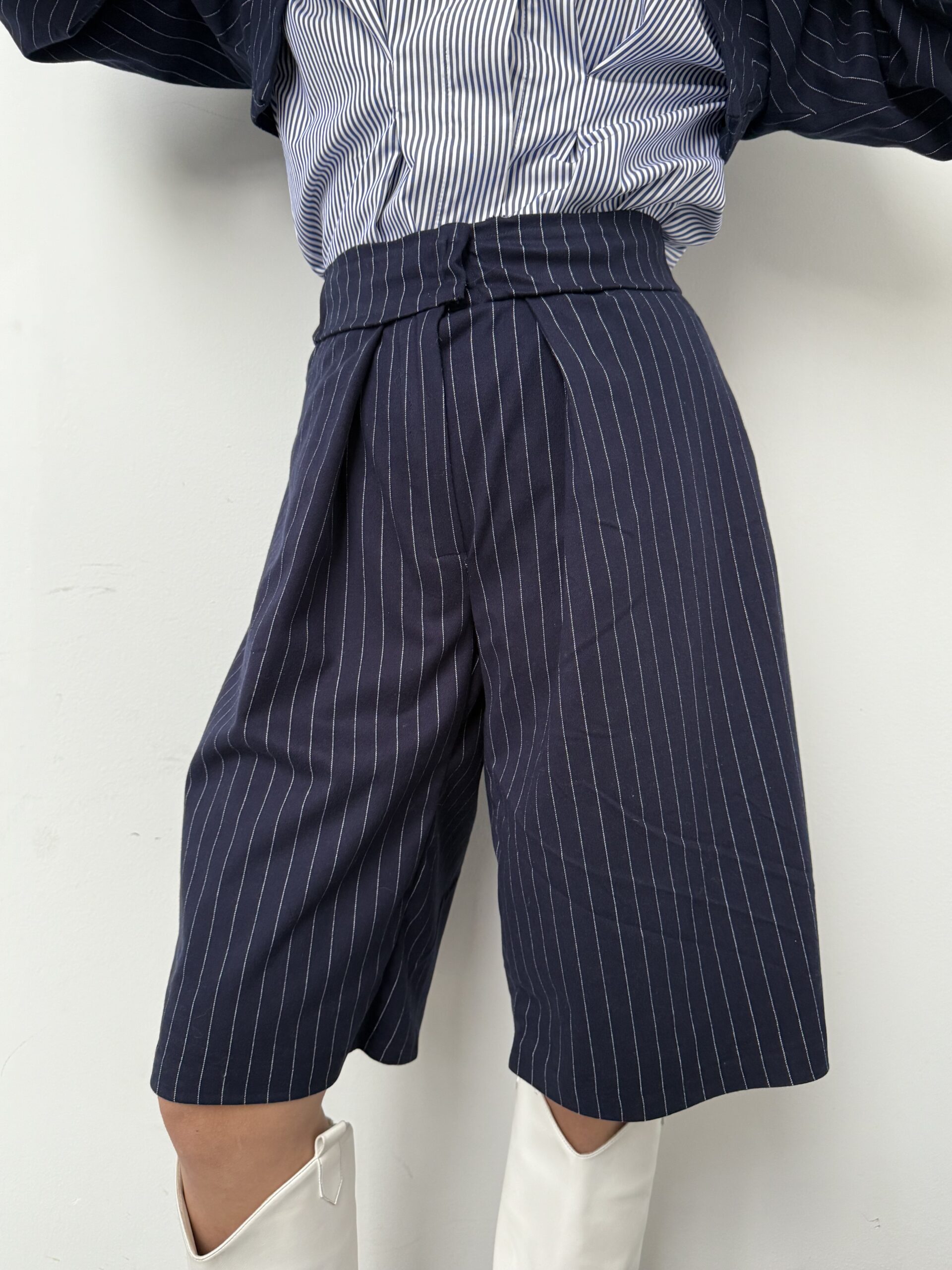 Γυναικεία βερμούδα pinstripe που διαθέτει ψηλή μέση,