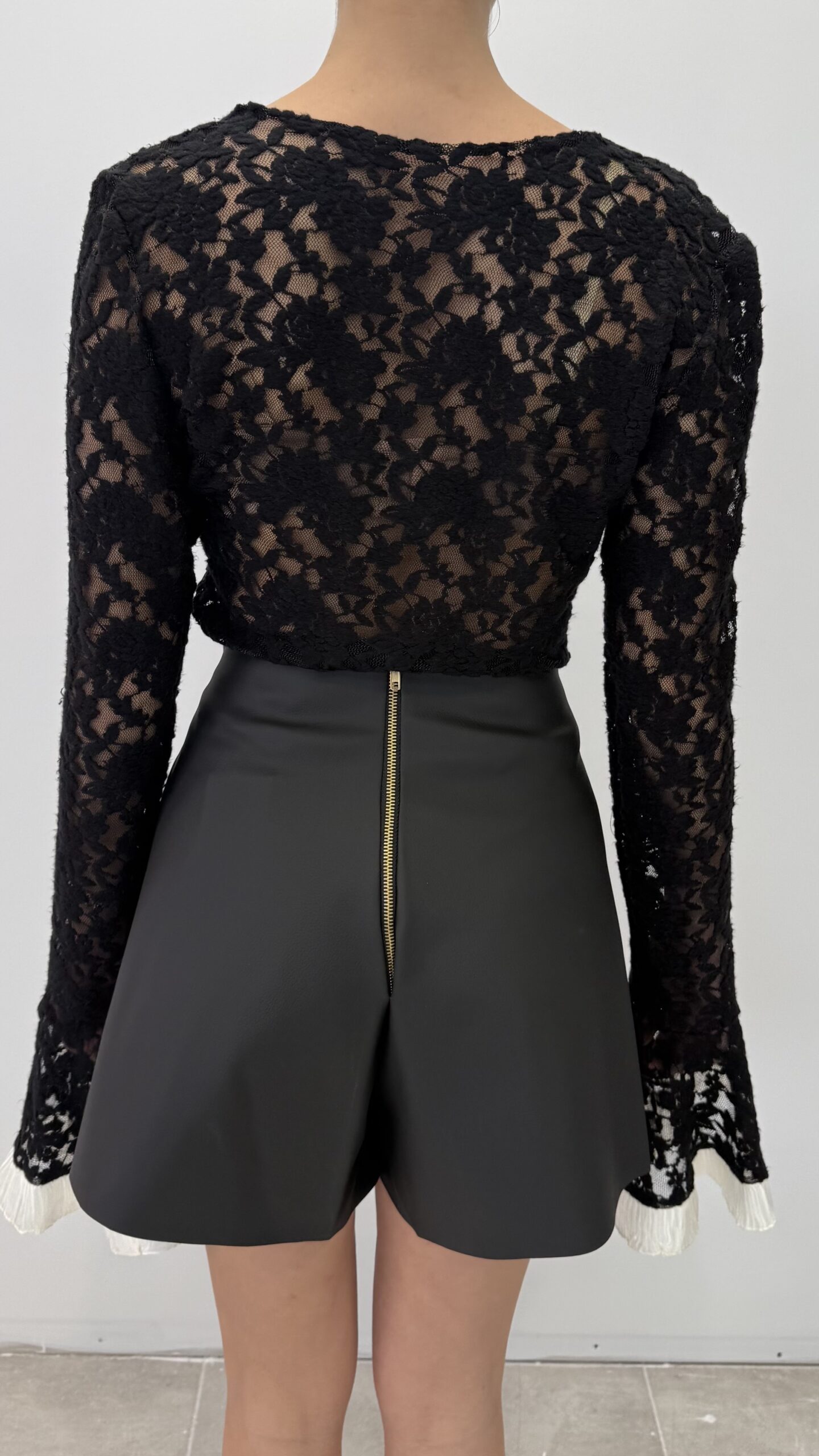 Κομψό σορτς σε αλφα γραμμή από δερματίνη.