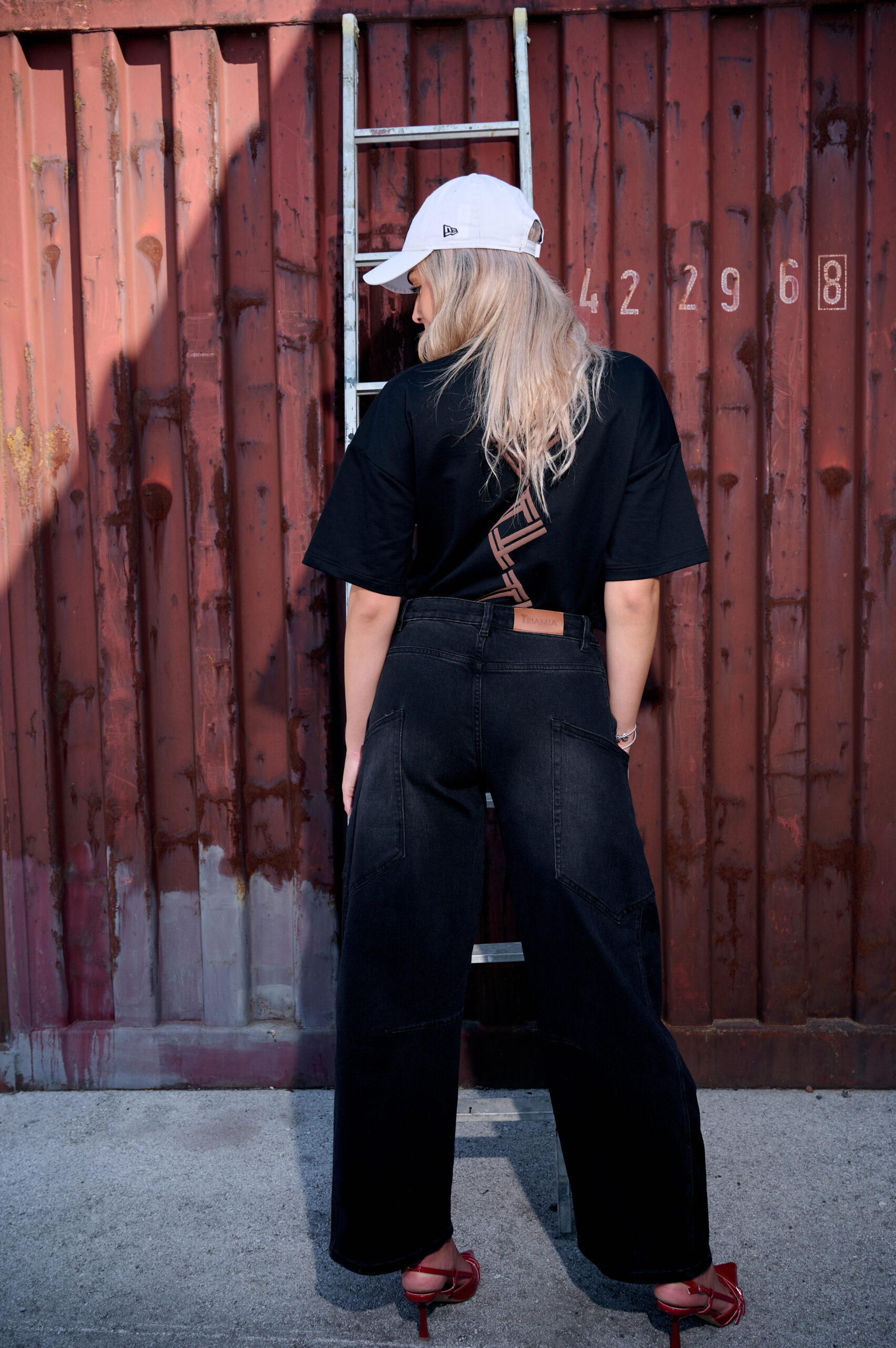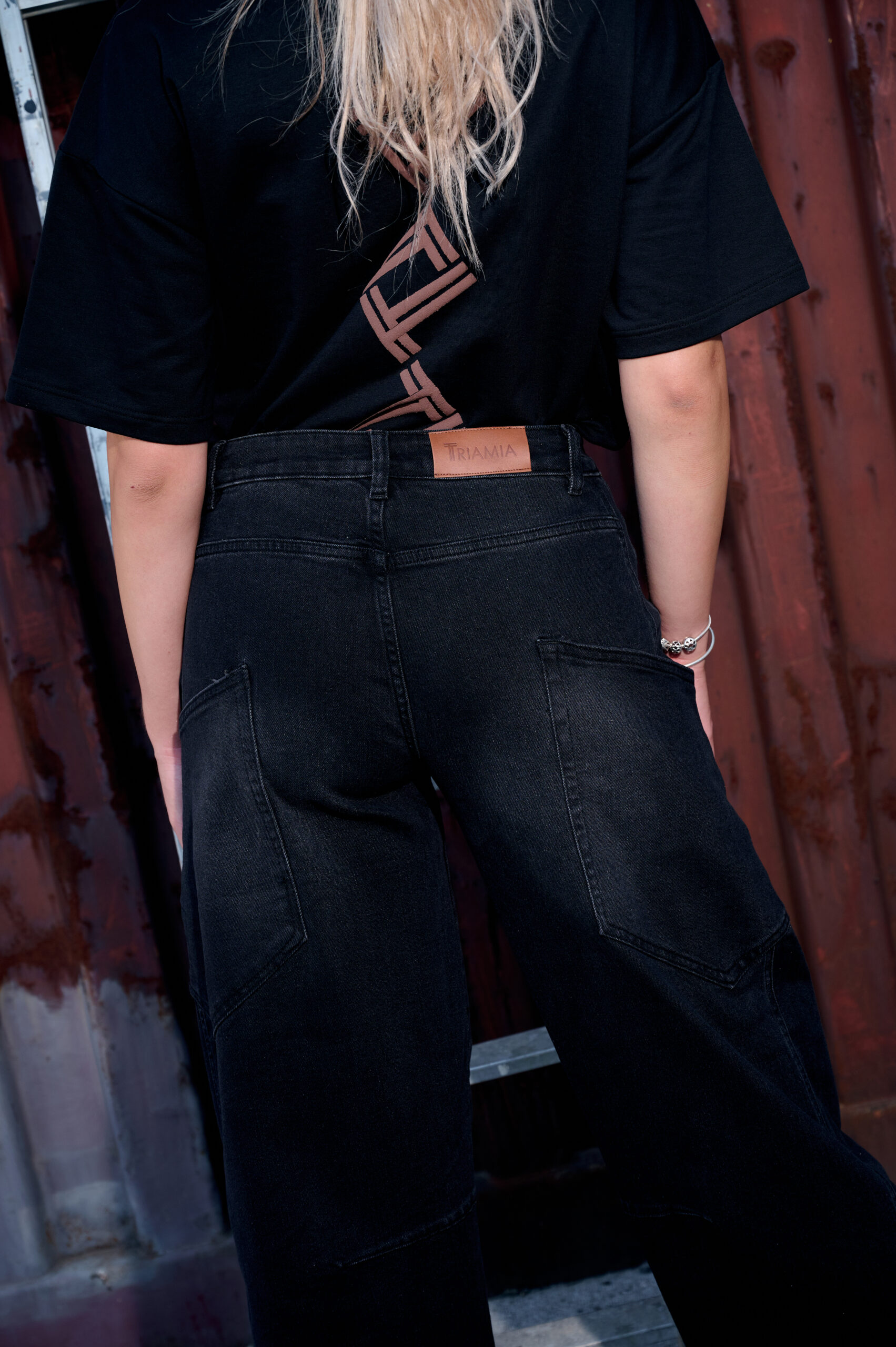 TRIAMIA σε μαύρο ξεθωριασμένο χρώμα .Η γραμμή wide leg συνδυάζεται